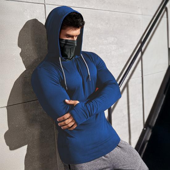 This men's sports top is crafted from high-quality polyester fiber, ensuring comfort and breathability to keep you dry during workouts. Its moisture-wicking fabric effectively absorbs sweat without causing stuffiness, making it ideal for intense exercise. Featuring a casual hooded design with a face cushion-covered collar, it offers both style and comfort.