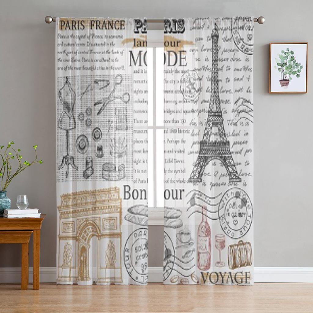 Paris Eiffel Tower Tulle Sheer Window Curtains For Living Room The Bedroom Modern Chiffon Voile Organza Curtains Decor Drapes