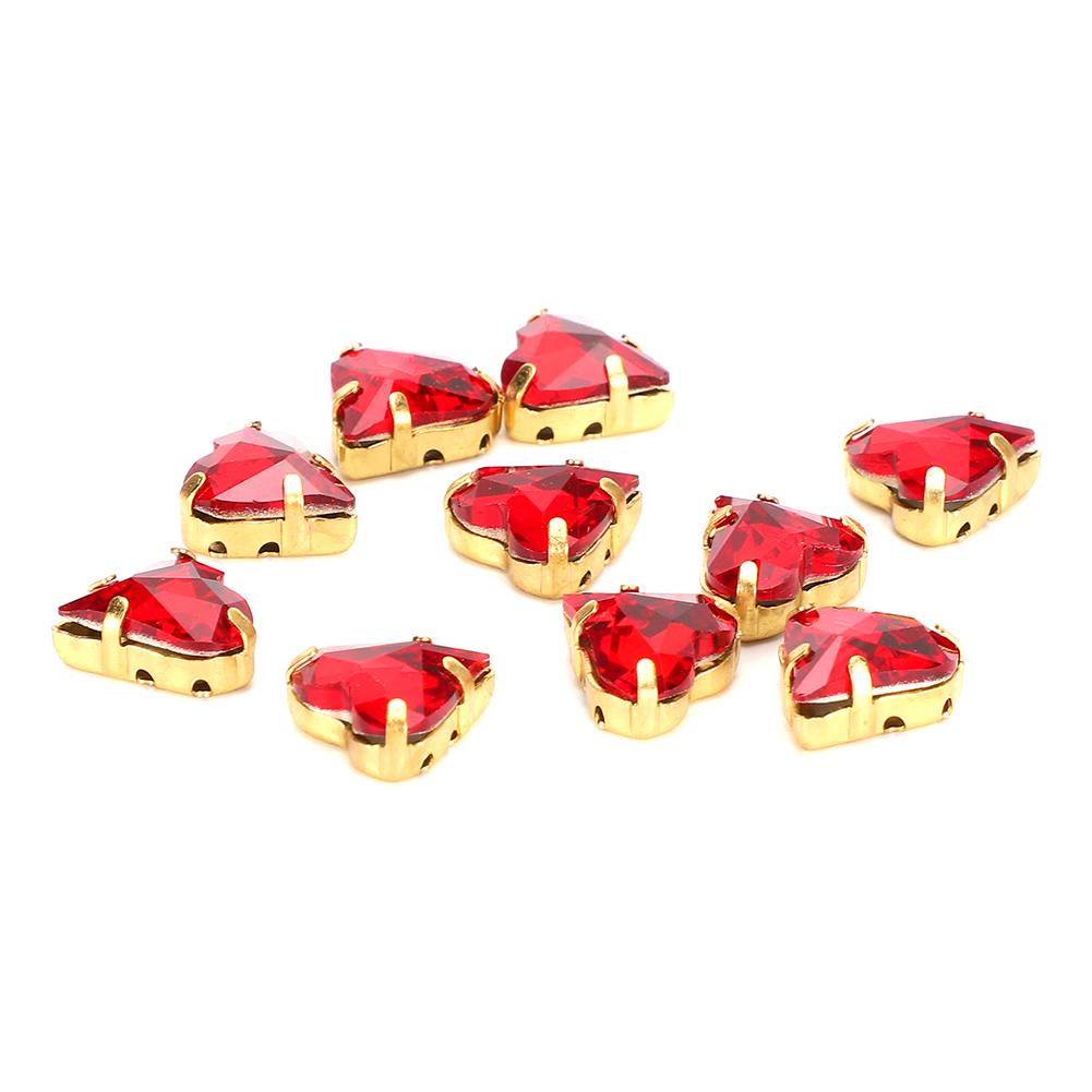 10pcs Red Imitation Crystal Stones Ornament Heart Shaped with Claw DIY Jewelry Clothing Decoration 12 X 13mm