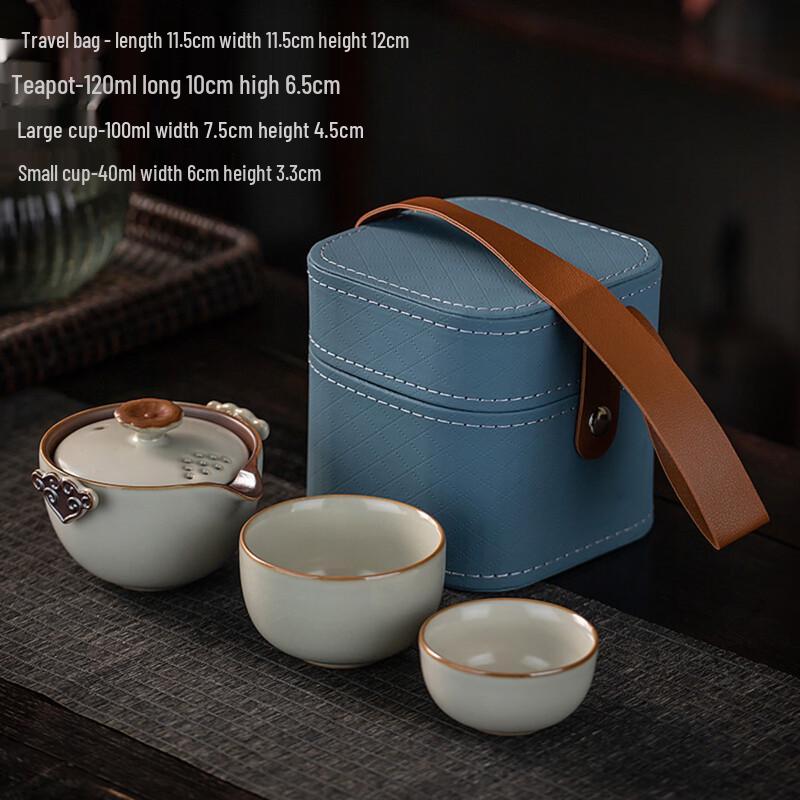 Shangqi Beige Reishi Ceramic Tea Set with Square Bag