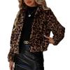 GMXIA Women's Autumn and Winter Loose Zipper Long-sleeved Leopard Print Plush Coat