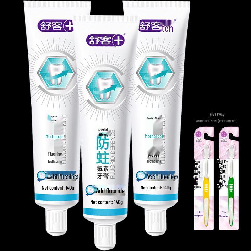 Shuke Anti-Cavity Fluoride Toothpaste 3-Pack with 2 Free Toothbrushes