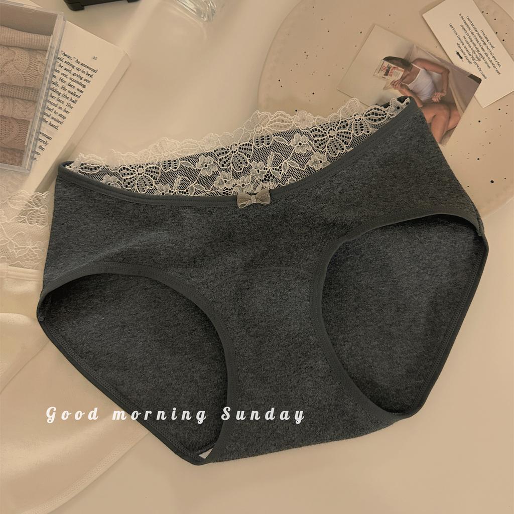 Female Spring and Autumn Sweet Lace Edge Pure Color Pure Cotton 10A Bacteriostatic Briefs