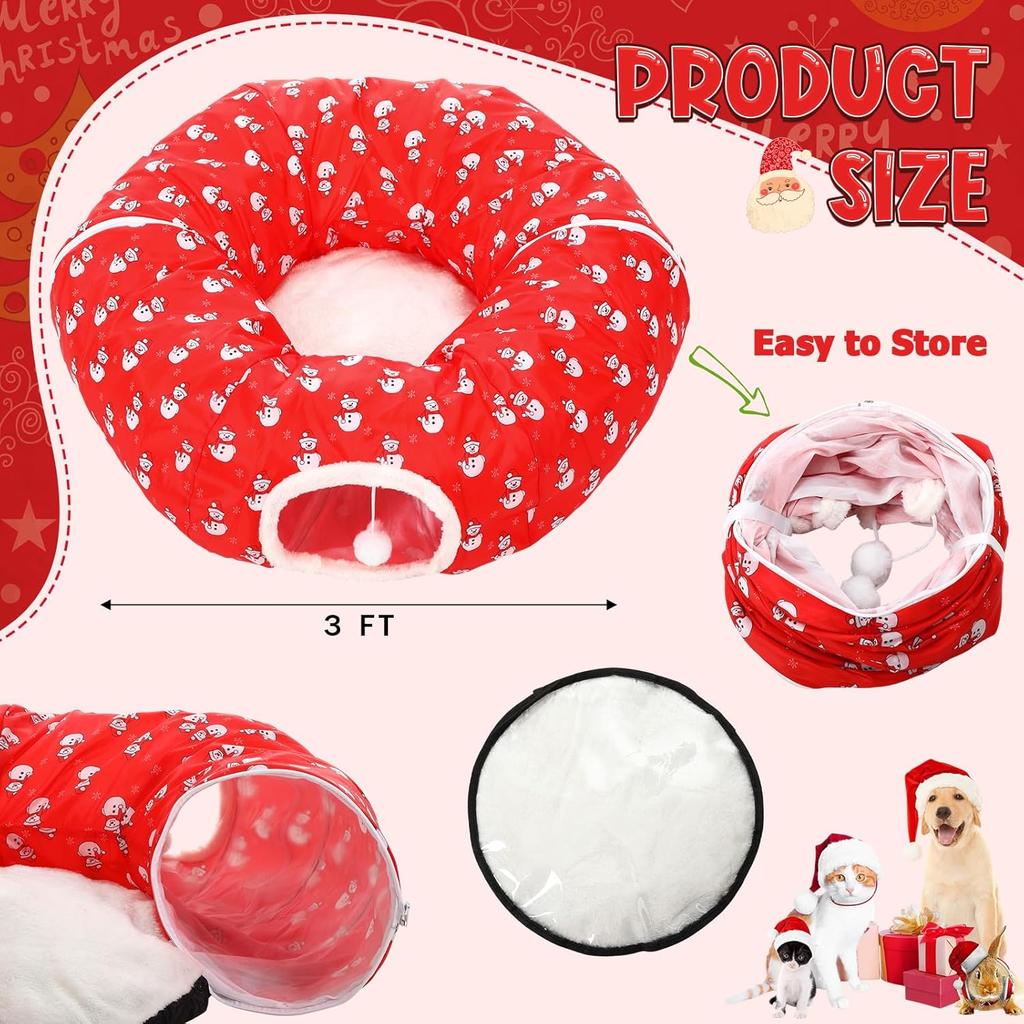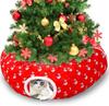 Cat Tunnel with Christmas Tree Skirt, 35.8'' Foldable Kitty Pipeline for Kittens & Small Pets, Xmas Festive Hanging Ball Decorat