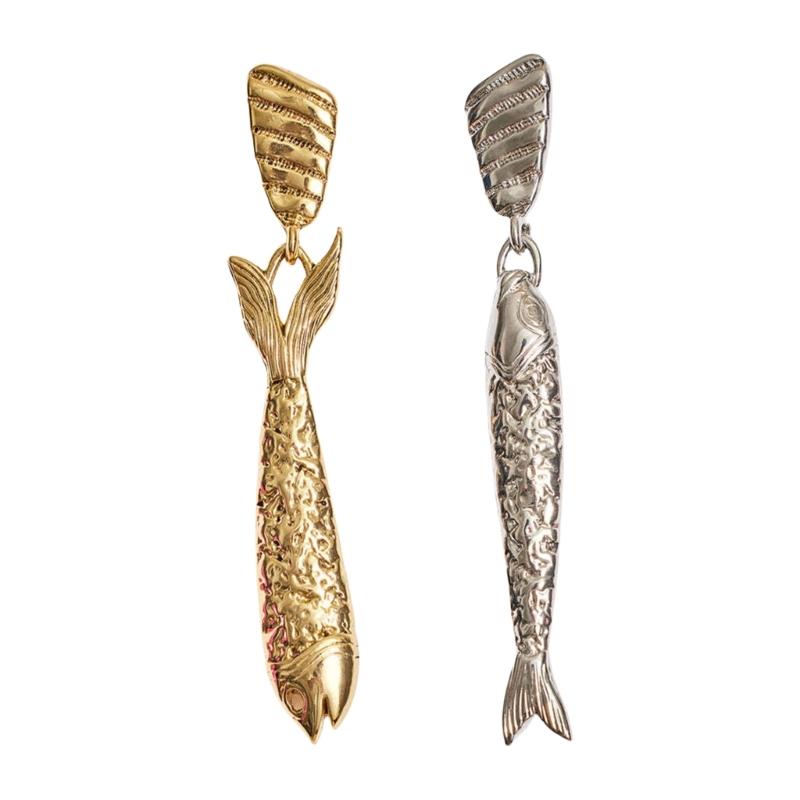 Retro Fish Mismatched Earrings Stainless Steel Texture Elegant Ear Jewelry Perfect for Daily Wear and Special Occasions