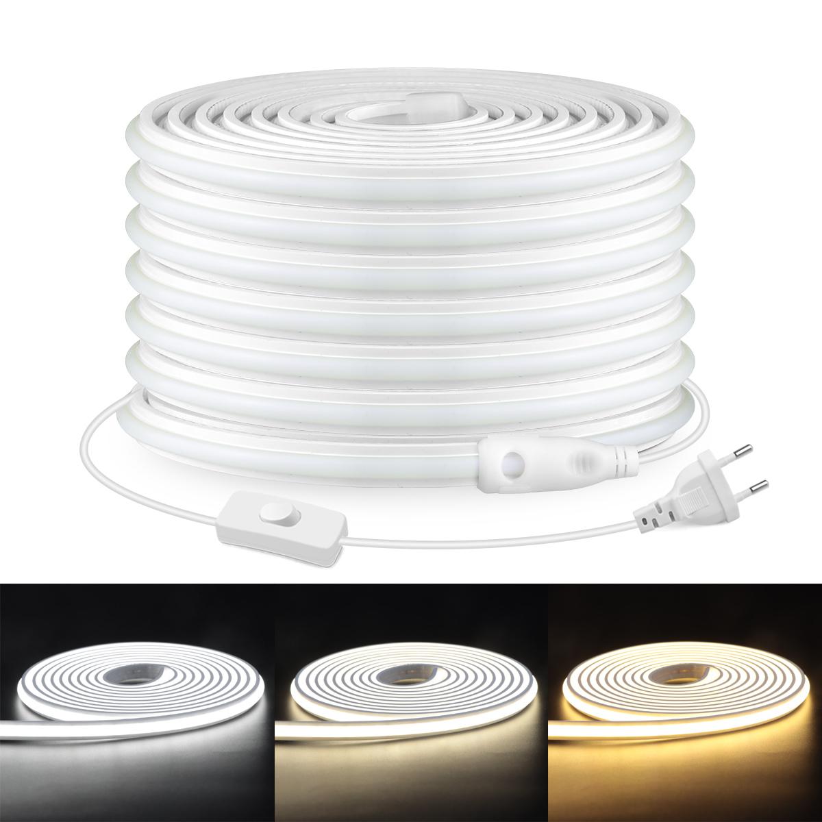 Fireproof Silicone LED Neon Light Strip 220V EU Plug In Self-Adhesive Even Glow COB LED Tape For Room Kitchen Outdoor Garden