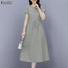 ZANZEA Women Casual Round Neck Solid Color Loose Short Sleeve Dress