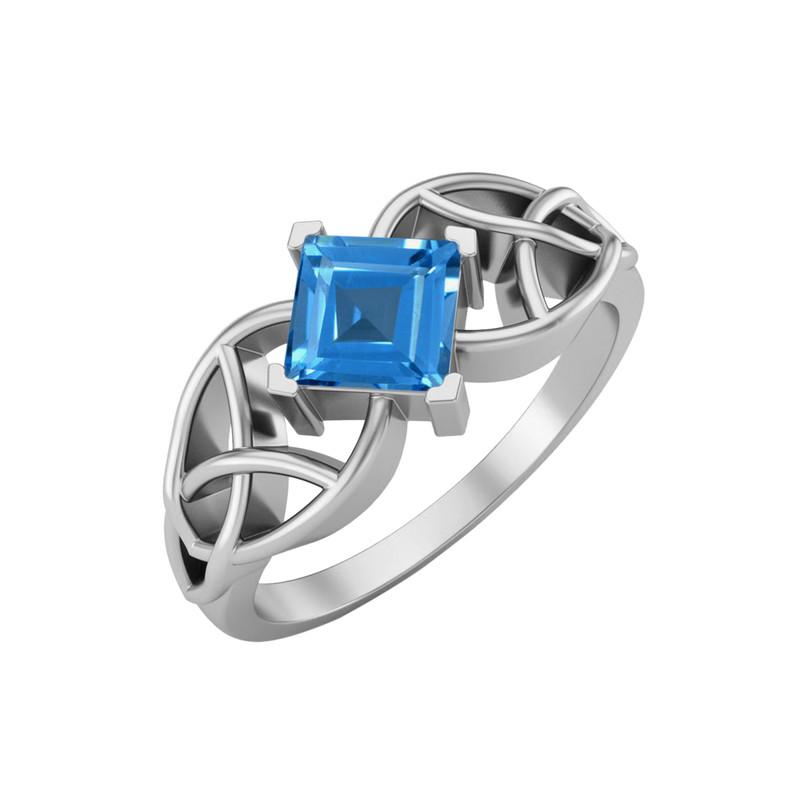 Gemstone Details: Main Stone 5MM Square Shape Swiss Blue Topaz .Total Carat Weight is 0.75 ctw.