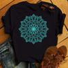 New Mandala Floral Printed T Shirt Women Casual Fashion T-shirt Loose Short Sleeve 90s Girls Aesthetics Black Tshirt Top