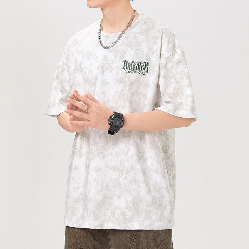 New American High-density Knitted Loose-print Men's T-shirt Short-sleeved