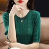 Hollow Hook-up Knitted Short-sleeved Summer Round Neck Pullover Thin Half-sleeved Top T-shirt Fashionable and Versatile Short-sleeved