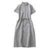 Summer Lady Dress Turn-down Collar Short Sleeves A-line Big Hem Pure Color Lace-up Strap Half Single-breasted Midi Dress Dating Commuting Dress