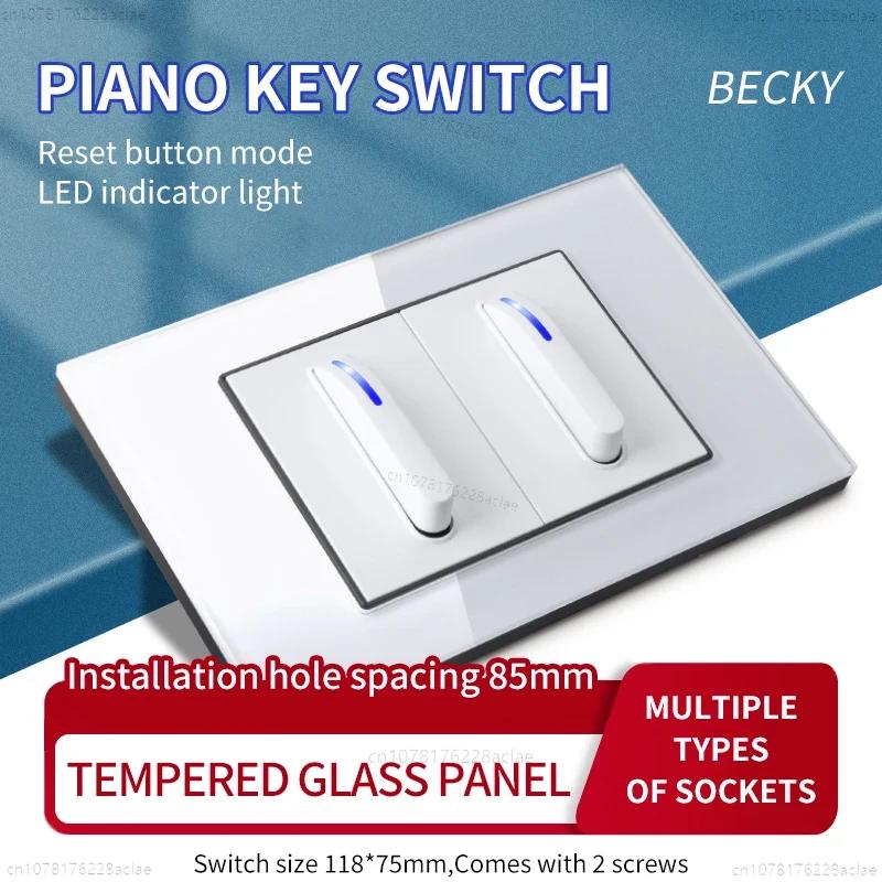 118 Type Piano Key White Tempered Glass Fashionable Switch Socket American British European Standard Universal Socket