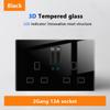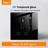 Luxury LED Indicator Light Switch Black Tempered Glass Piano Key Self-reset Wall switch,UK EU Universal USB C Electrical Socket