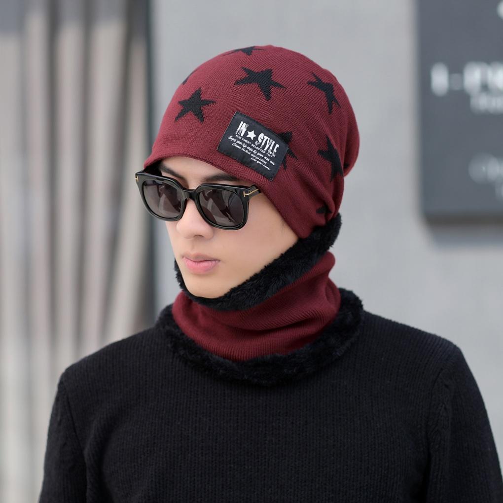 Winter Cold Weather Gear Neck Warmer, Mock Toshi Beanie Set, Wine for Men