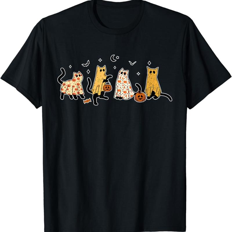 NEW Cute Black Cats In Ghost Costume Women and Men Halloween T Shirt S 3XL