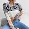 Vintage Fashion Elegant Casual Autumn and Winter Women's Long-sleeved Leopard Hit Color Knitted Sweater