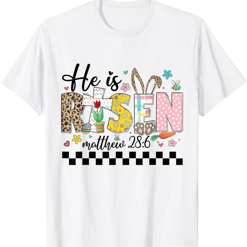 He Is Risen Christian Easter Rabbit Happy Women Girls T Shirt