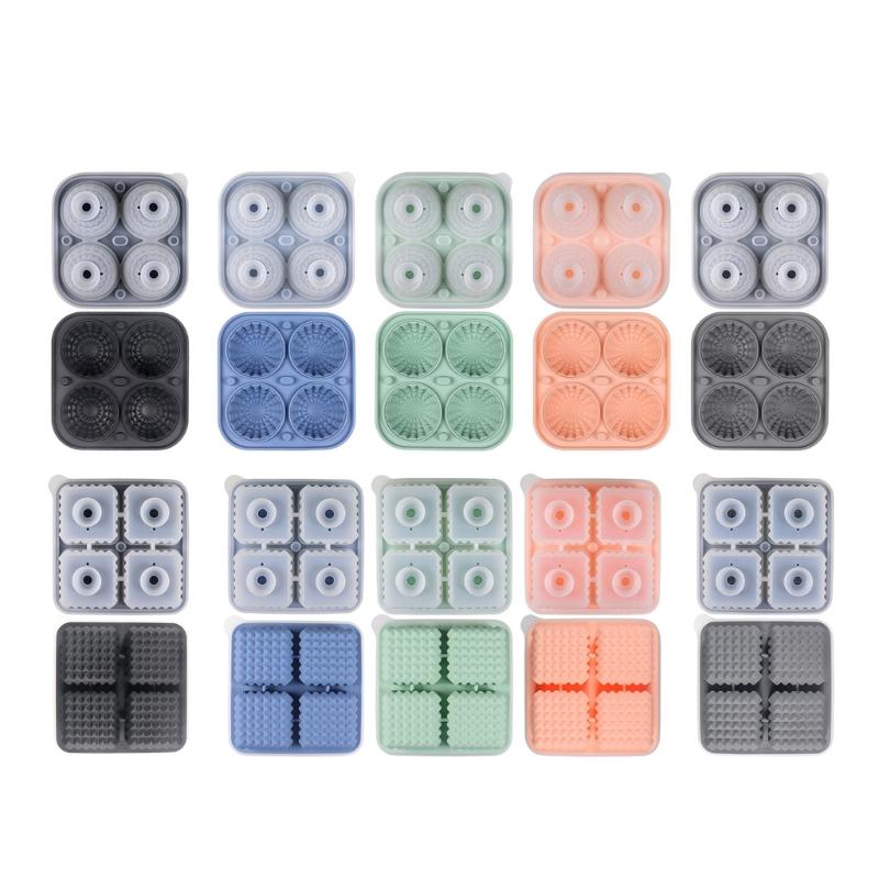 Ice Cube Tray for Freezers 4 Grid Silicone Molds Square Round Ice Makered for Whiskeys Cocktails Bar Tool Easy To Release