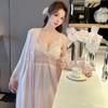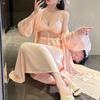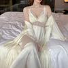 Spring Summer Kimono Bathrobe Gown Female Long 2PCS Robe Set Sleepwear Sexy Lace Nightgown Intimate Lingerie Satin Home Dress