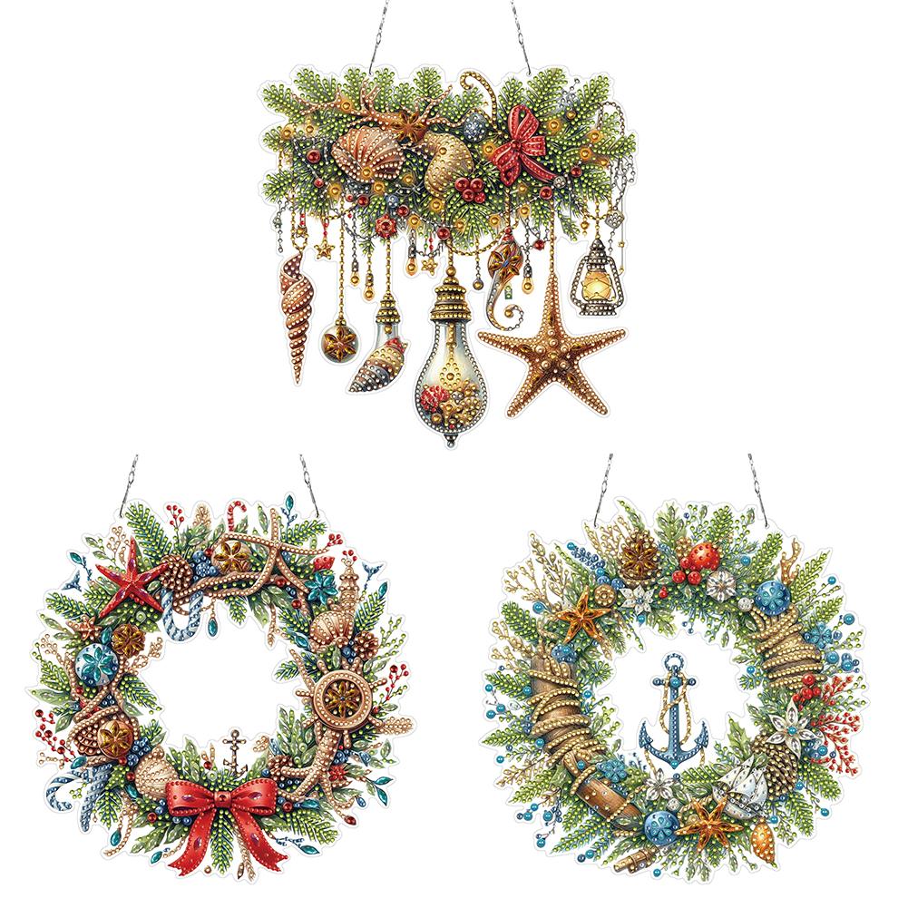 Xmas Theme 2D/Flat DIY Rhinestone Diamond Art Window Pendants Diamond Painting Set Diamond Art Pendant Wall Door Decoration