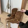 Autumn Winter Pleated Western Mid Calf Boots Women Designer Pointed Toe Internal Elevation Knight Botines De Mujer