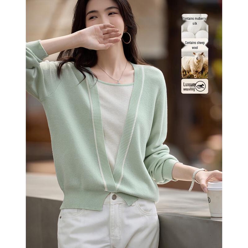 Demana Soft Light Star Yarn Merino Wool Silk Blend Deep V-neck Knit Sweater