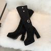 Vintage Platform Thick Heel Women Knee High Boots Fashion Slip On Shoes Autumn Winter Female Slim Suede Long Booties