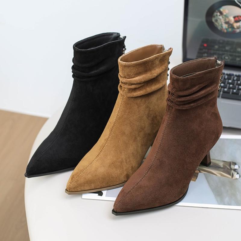 Autumn Winter Pointed Toe Pleated Slim Women Ankle Boots Sexy High Heel Stripper Party Short Booties De Mujes