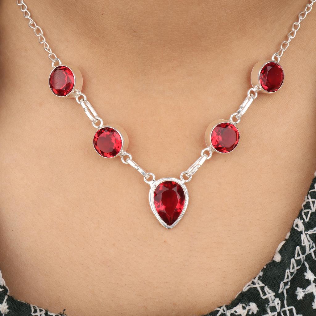 Natural Pink Rubellite Gemstone Silver Necklace 16-18" 925 Sterling Silver Handcrafted Jewelry RN-3-11