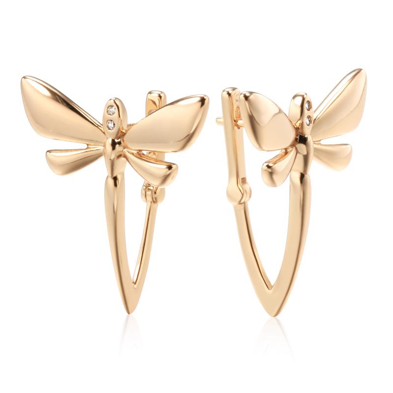 Fashion Glossy Long Drop Earrings For Women Rose Gold Simple Dragonfly English Earrings Bride Wedding Daily Jewelry