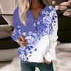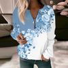 Women Sweatshirt Pullover Basic Quarter Zipper Long Sleeve Print Flowers Hoodie Casual Top