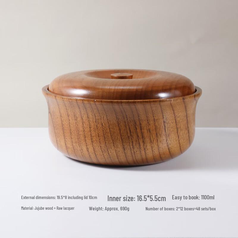 ZISIZ Natural Sour Jujube Wood Large Covered Bowl