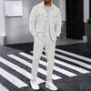 Men's Casual Long Sleeve Pants Two Piece Set Solid Color Double Pocket Workwear Cardigan Shirt Set