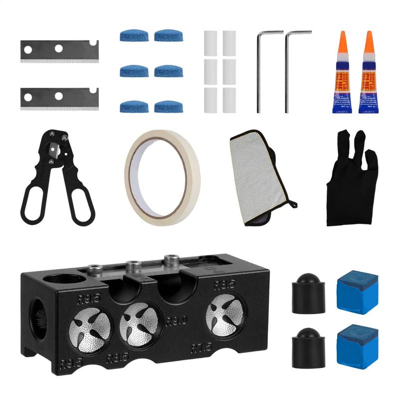 Pool Cue Tips Replacement Kit Professional Billiard Cue Replacement Portable Complete Pool Repair Tool for Billiard Pool Cue