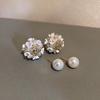 Double-Sided Silver Needle Pearl & Diamond Stud Earrings - Korean Cold Style for Women