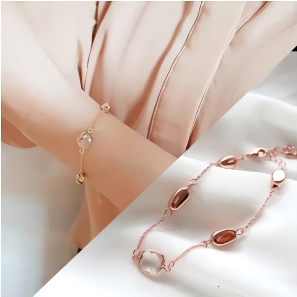 Simple Ball Chain Daily Pink Gold Bracelet with Real Glass Stone