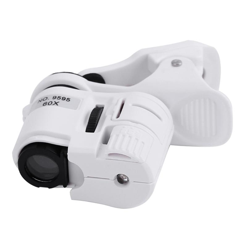 Pocket Mobile Phone Microscope 60X-Zoom LED Clip Loupe Microscope with UV Currency Detector Jewelry & Antique Evaluating