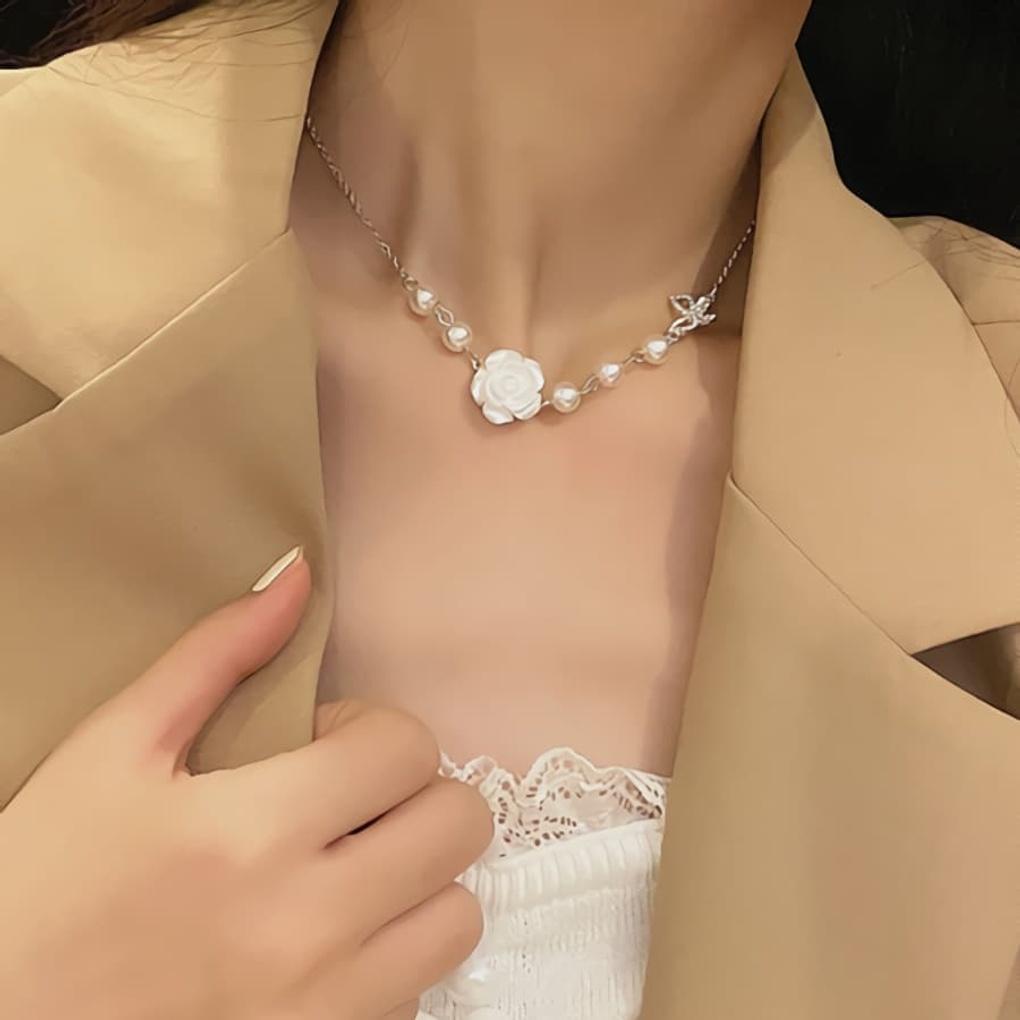 Women's Daily Chain White Rose and Butterfly Necklace