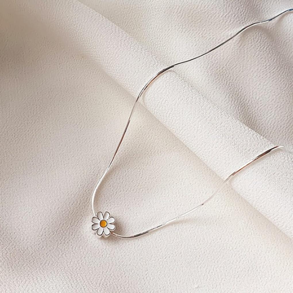 Women's Daily 925 Silver Snake Chain Daisy Necklace