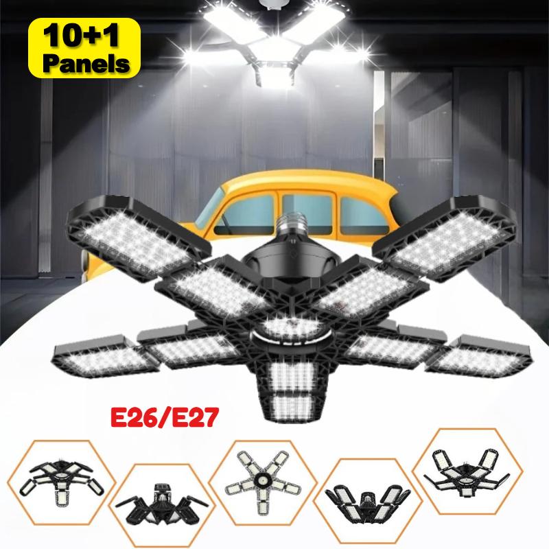 LED Garage Lights with 6+1/8+1/10+1 Adjustable Panels E26/E27 Ceiling Shop Work Lamp 150W 6500K Bulb for Workshop Industrial Lighting