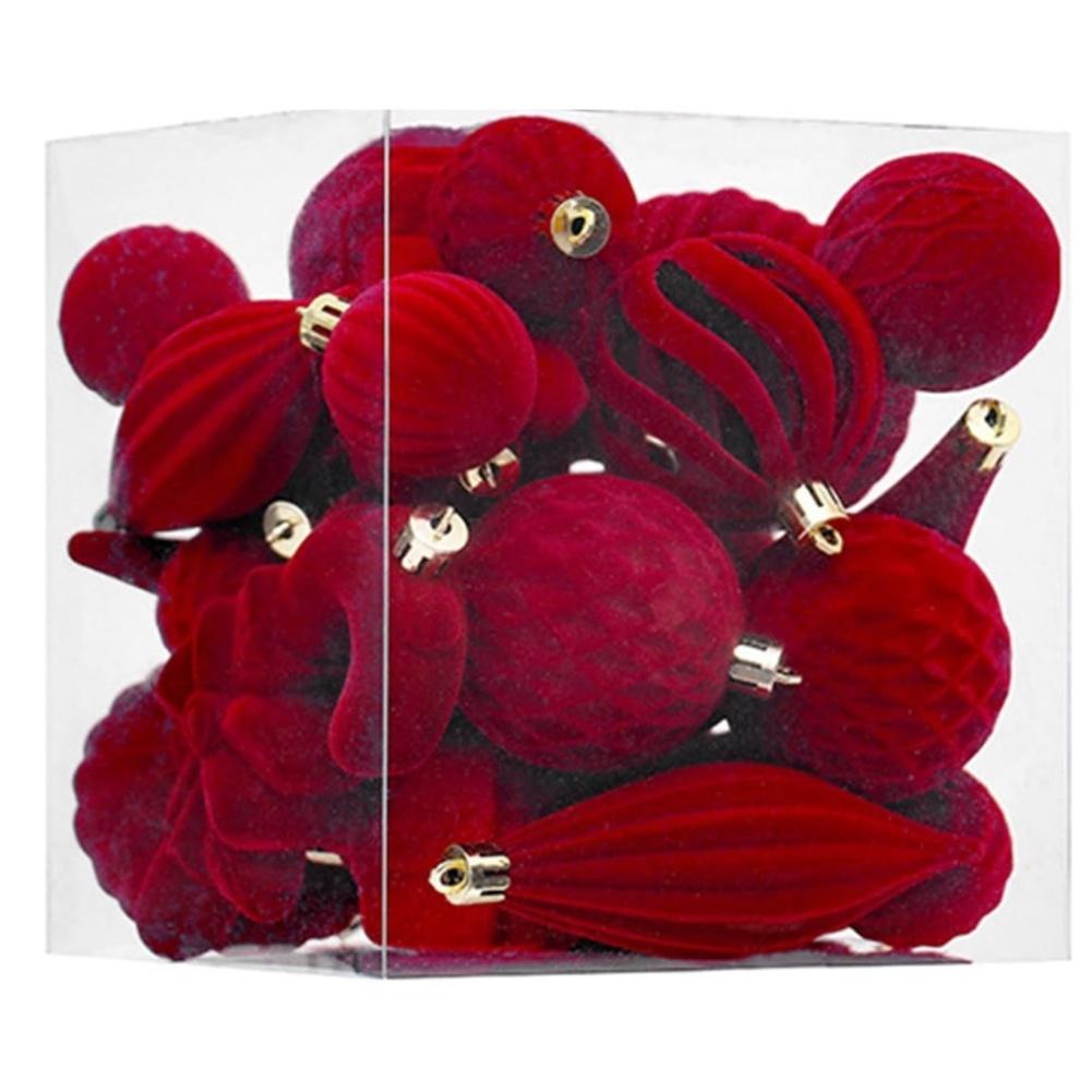 Velvet Christmas Ornaments Set 28 Pcs - Festive Holiday Decor With Assorted Styles For Tree, Table Centerpiece And Home Display