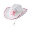 White Cowgirl Hats Pink Star Cow Girl Hat with Sequin Trim Fringe Adjustable Neck Draw String Adult Cowboy Hat for Costume Party
