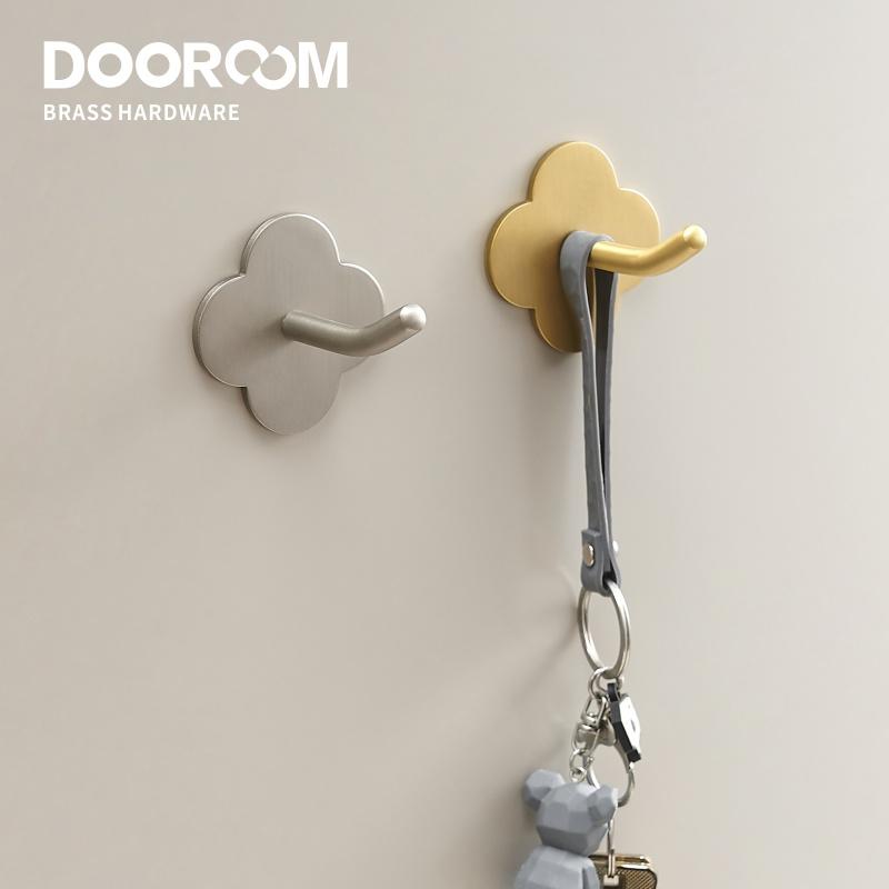 Doodoom Brass Punch Free Bearing Hooks Bathroom Indoor Kitchen Hallway Wall Clothes Hooks Wall Hangers Row Hooks Nordic