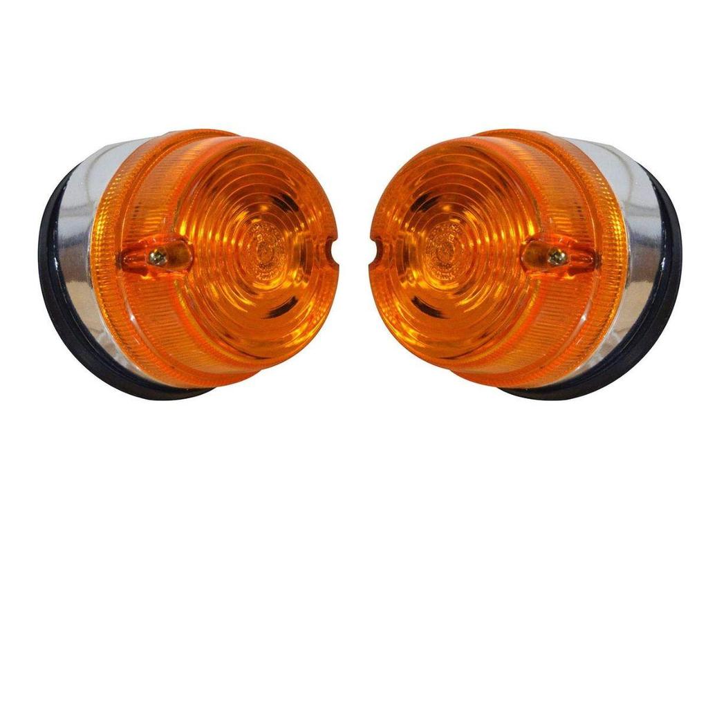 High-brightness amber front indicator lamp assemblies with durable polycarbonate housing and 12V bulbs. Designed for FIAT 682-N3 trucks and suitable for universal automotive applications.
