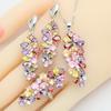 Multi Color Zircon Stamp Women Jewelry Sets Bracelet Earrings Necklace Pendant Ring Wedding Party Birthday Gift