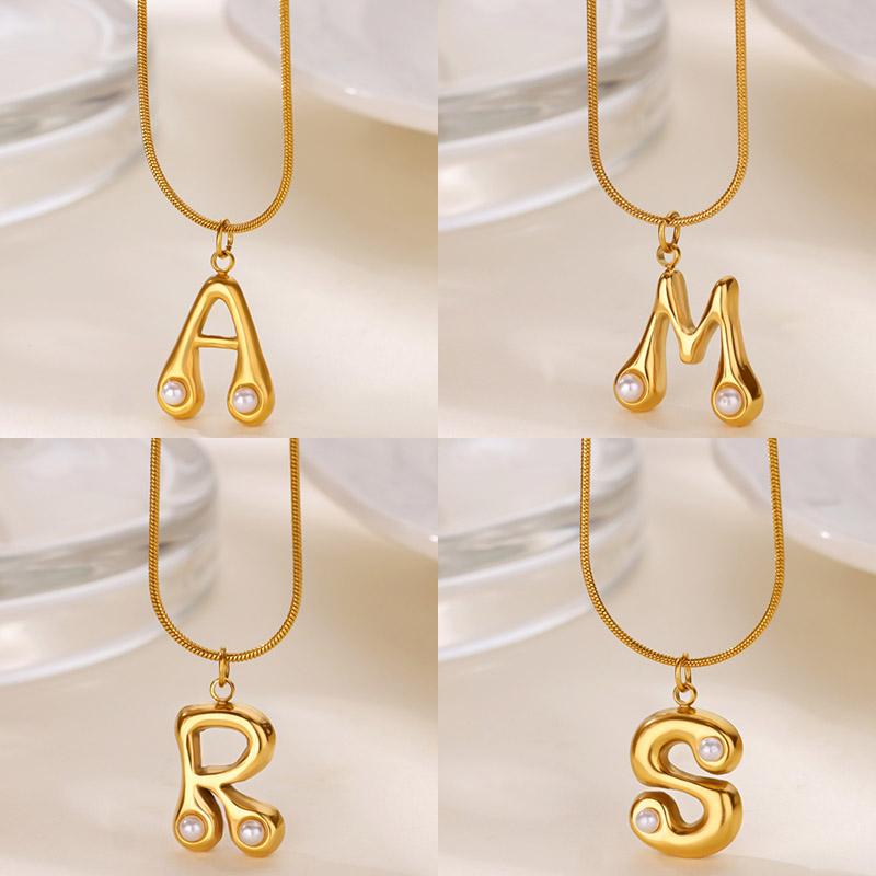 Initials Letter Pearl Necklaces For Women Gold Color Stainless Steel Letter Necklace Chain Collar Necklace Wedding Jewelry Gift