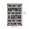 Vintage Metal Guitar & Happiness Poster Wall Art, 8x12 Inch Laser-Cut Decor for Living Room/Office, Humorous Iron Gift for Music