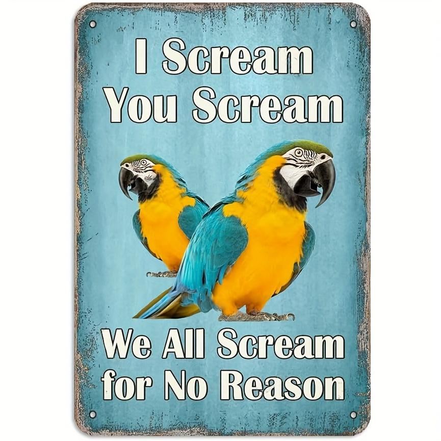 Funny 'I Scream, You Scream' Parrot & Macaw Metal Sign - Vintage Wall Decor for Home, Kitchen, Garden, Farmhouse & Chicken C