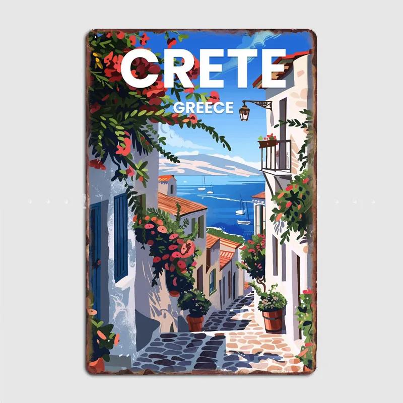 Island of Crete Vintage Travel Scenery Poster Metal Sign Mural Plates Club Tin Home Decor Room Decoration Wall Decor